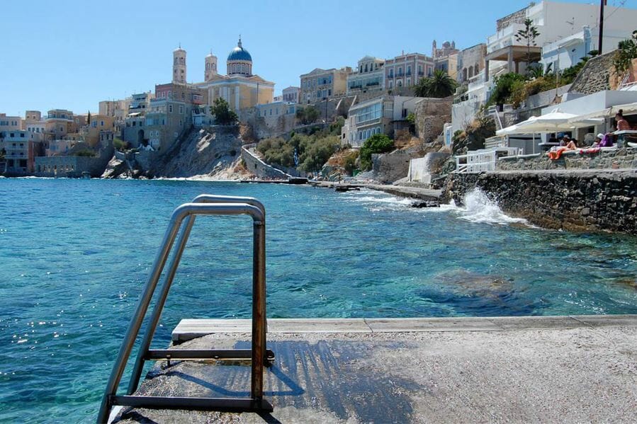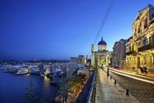 Syros has a population of approximately 20 thousand Greek Orthodox as well as Catholic people. Hermoupolis, its capital city, is known as “The Lady of the Aegean Sea”. Built amphitheatrically on the hills embracing its port, Hermoupolis will instantly take your breath away with its imposing architectural gems: in all likelihood, it is the only classic city left in Greece. Its architecture bears witness to the island’s history and, starting in ancient times, continues to the present. It masterfully combines the old with the new, the classical with the modern.