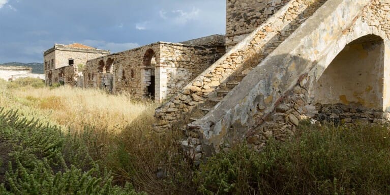 The quarantine hospital (Lazaretto) is an abandoned stone building complex at the port’s southern part, in the area of Lazaretta. Built in 1834, on Weiler’s design, the Lazaretto was initially used as a quarantine space for visitors to the island in order to protect the native population from outbreaks of cholera and other infectious diseases. From the late 19th century and up until the early postwar years, Lazaretto first served as a prison and then as an asylum for the mentally ill.