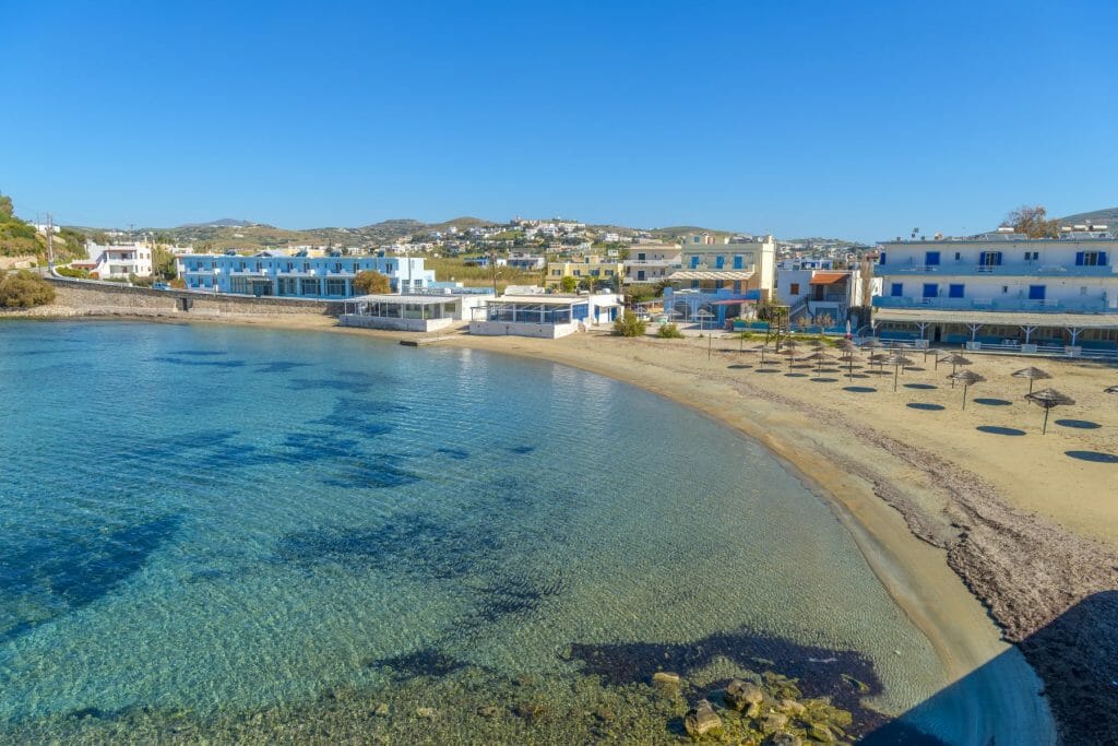 It’s one of the island’s top choices for swimming forays thanks to the area’s majestic landscape. More of a base and meeting point than a beach in the conventional sense, Asteria’s landmark is its stone-built platform which, gazing out onto the wide blue yonder, invites you to dive straight into the waters. Behind you, on the shore, let your gaze sweep over the beachfront buildings (old sea captains’ mansions) which seem to have managed to perch themselves on the cliffs so that they can get a better view of the open sea. Among those buildings, there is no way you won’t single out the lovely church of Aghios Nikolaos of the Rich (Saint Nicholas of the Rich).