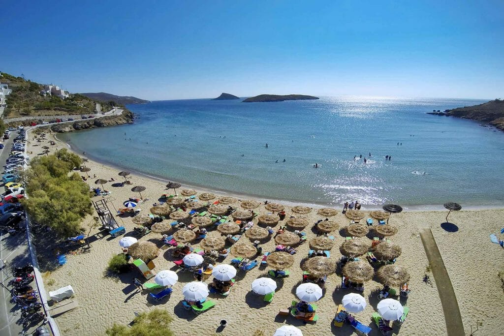 This beach has it all: loungers, sun umbrellas, lots of food & drink alternatives, and all sorts of accommodations. That’s exactly why it is a popular holiday destination for families, groups of friends, or those looking for a straightforward food-tasting experience in one of its classic taverns. For those seeking alternative locations, Vari is close to several other beaches as well.